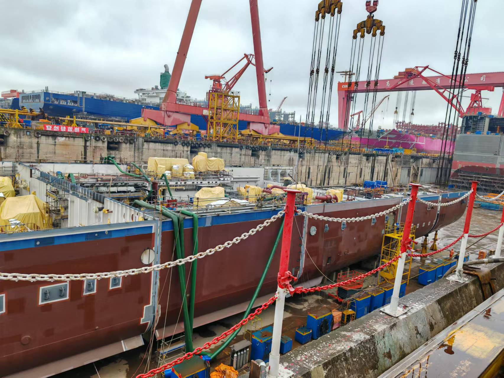 “愛達(dá)·魔都號”屬于首制船,但第二艘則不同,開建伊始提出的目標(biāo)就是我國要具備批量化生產(chǎn)制造大型郵輪的能力。盡管總噸位增加、總長加長,但建造之迅速給許靜留下了深刻印象,“前段時間我們?nèi)ツ沁叢榭矗旅鎺讓蛹装逡呀?jīng)搭載完畢。”有了之前的經(jīng)驗和打下的基礎(chǔ),第二艘郵輪搭載起來“進(jìn)度條”也頻頻刷新。