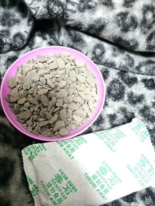 1.觀形態(tài):真睿石為天然開采后破碎活化,呈不規(guī)則的多棱形顆粒狀;假冒產(chǎn)品多為人工壓制的規(guī)則球形。